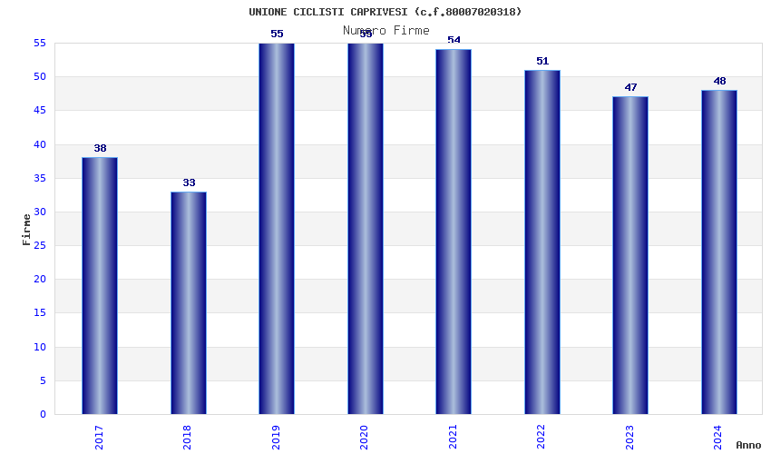 | Anno | Firme | Importi | Media | Naz. | Reg. | Prov. | Comu. |