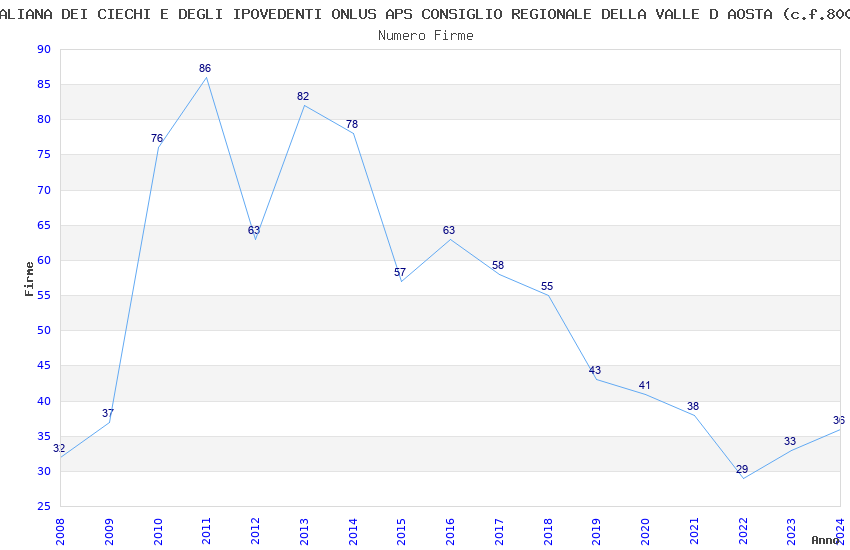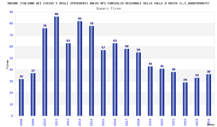 | Anno | Firme | Importi | Media | Naz. | Reg. | Prov. | Comu. |
