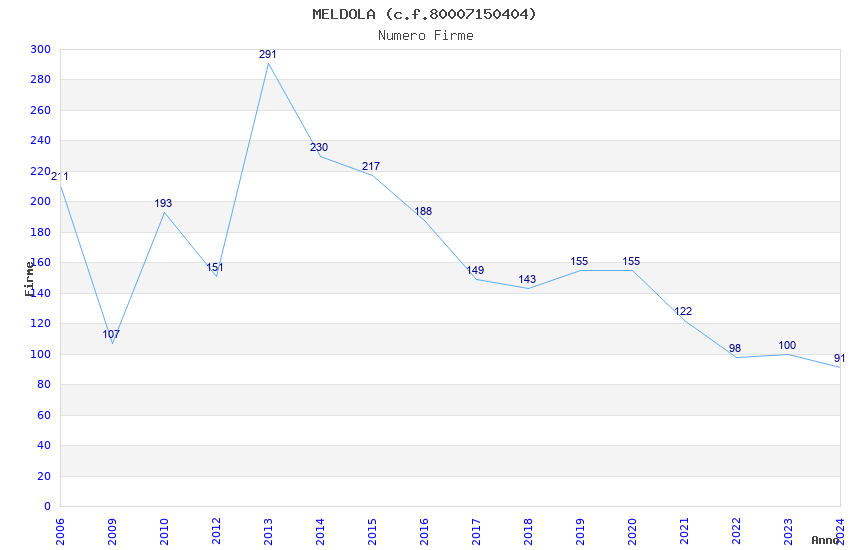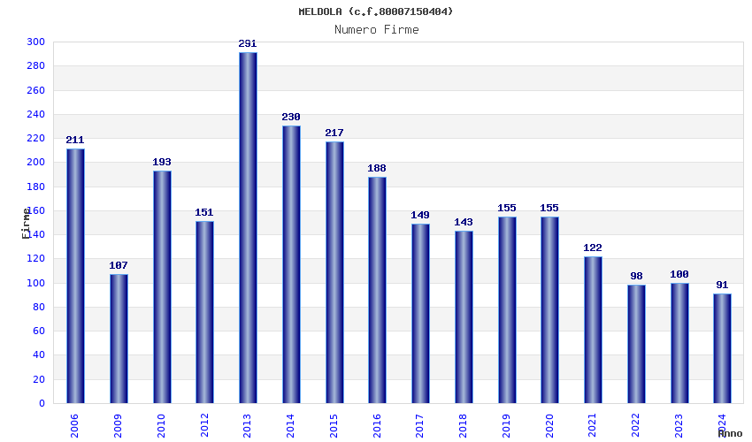 | Anno | Firme | Importi | Media | Naz. | Reg. | Prov. | Comu. |