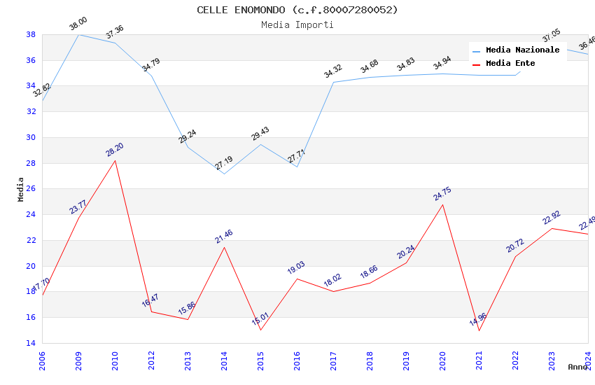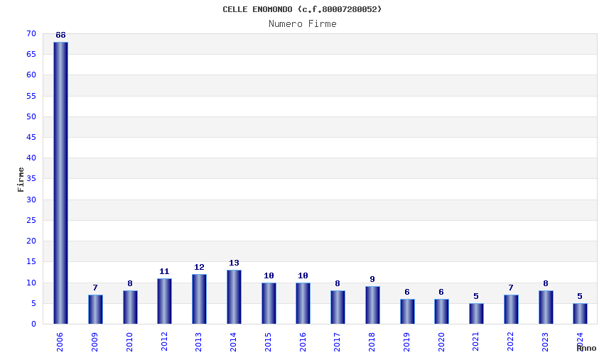 | Anno | Firme | Importi | Media | Naz. | Reg. | Prov. | Comu. |