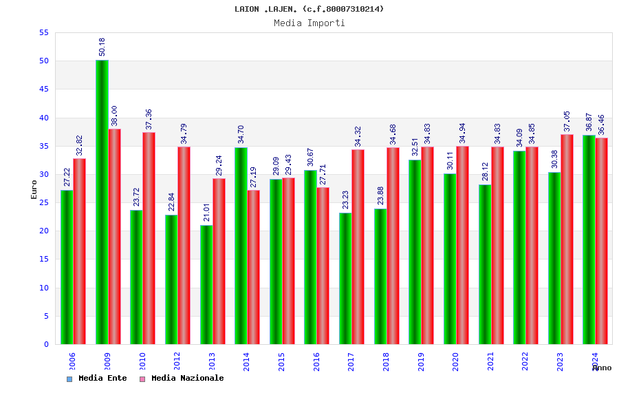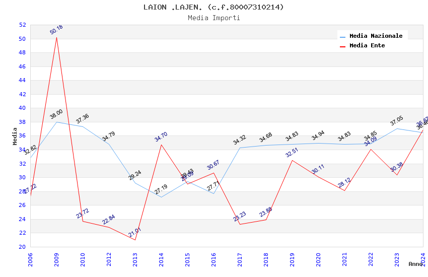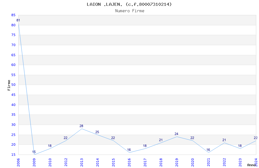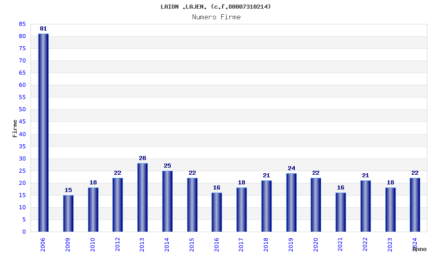 | Anno | Firme | Importi | Media | Naz. | Reg. | Prov. | Comu. |