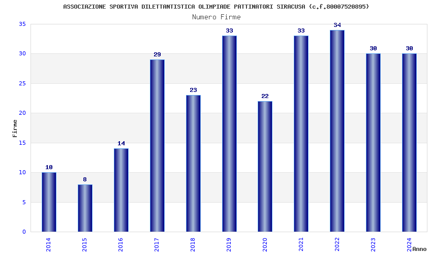 | Anno | Firme | Importi | Media | Naz. | Reg. | Prov. | Comu. |