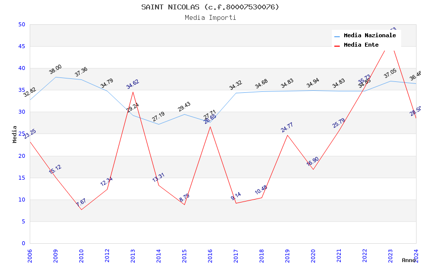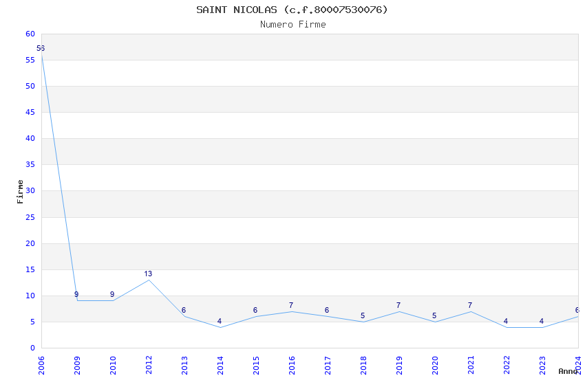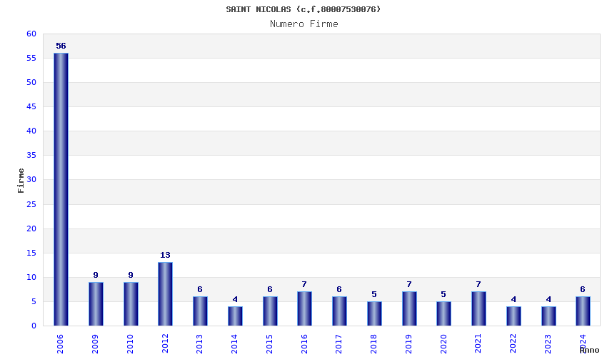 | Anno | Firme | Importi | Media | Naz. | Reg. | Prov. | Comu. |