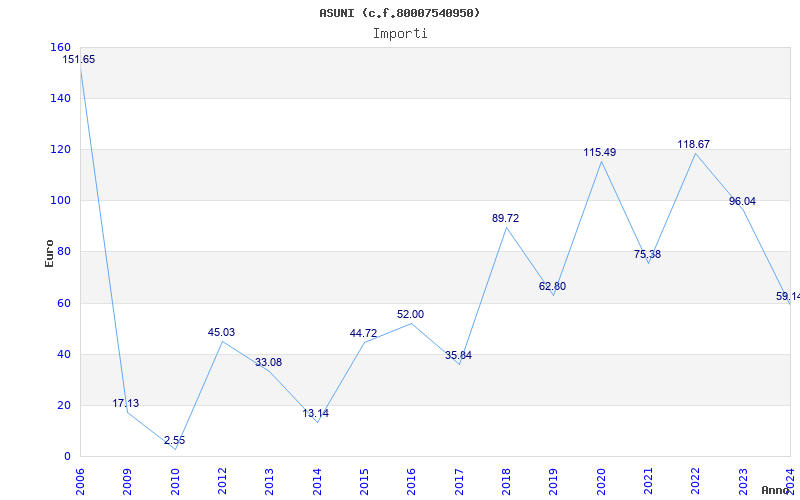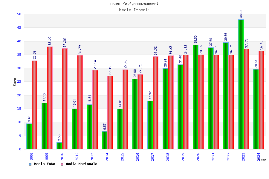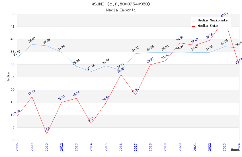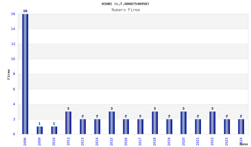 | Anno | Firme | Importi | Media | Naz. | Reg. | Prov. | Comu. |