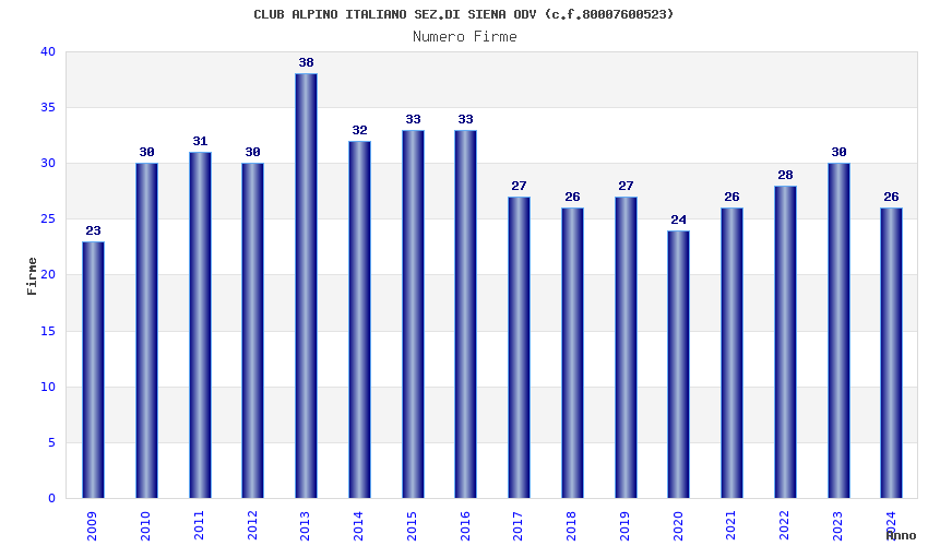 | Anno | Firme | Importi | Media | Naz. | Reg. | Prov. | Comu. |