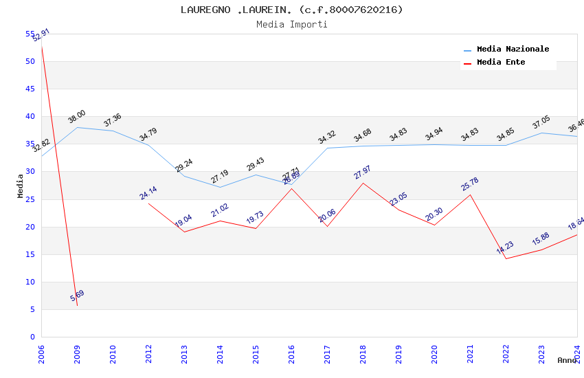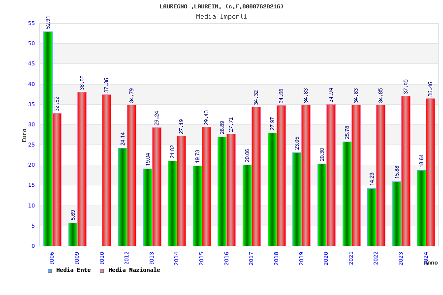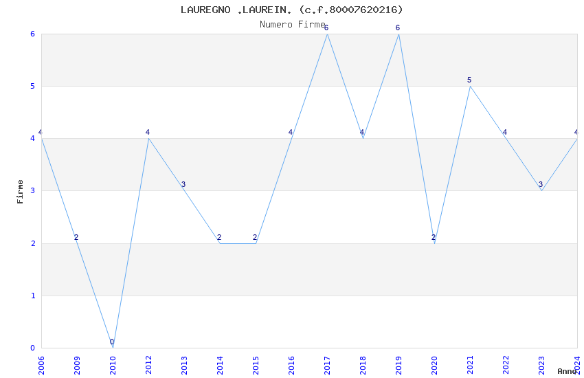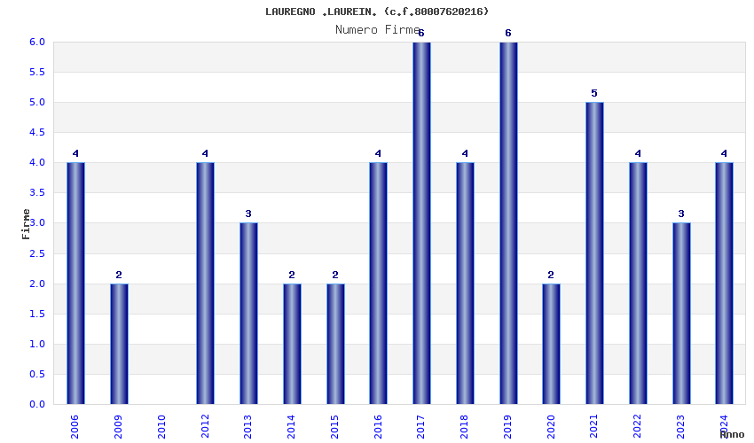 | Anno | Firme | Importi | Media | Naz. | Reg. | Prov. | Comu. |