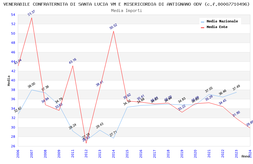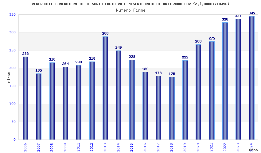 | Anno | Firme | Importi | Media | Naz. | Reg. | Prov. | Comu. |