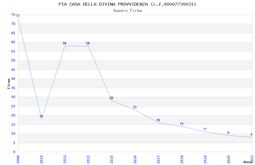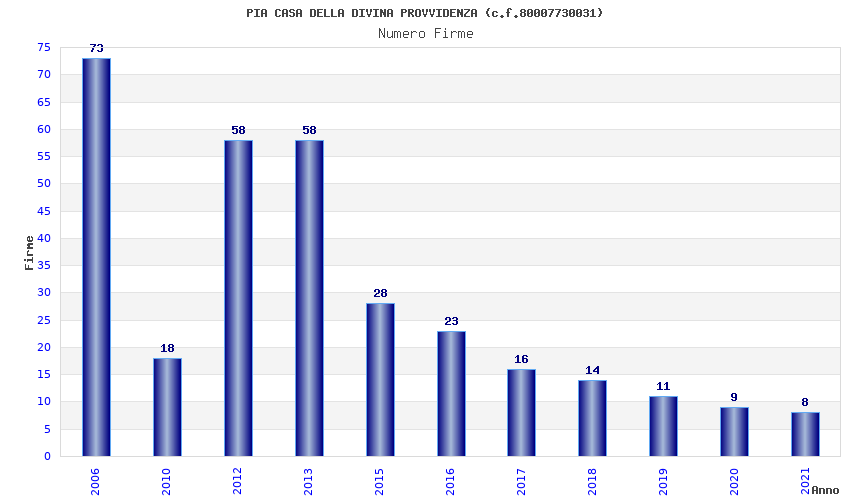 | Anno | Firme | Importi | Media | Naz. | Reg. | Prov. | Comu. |