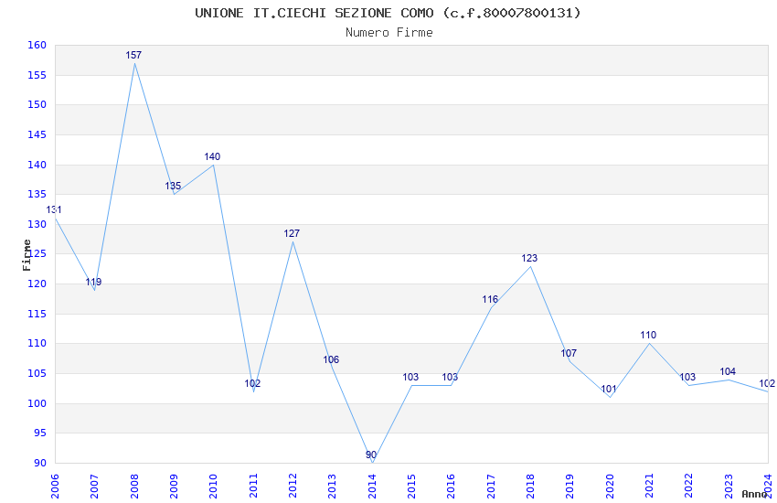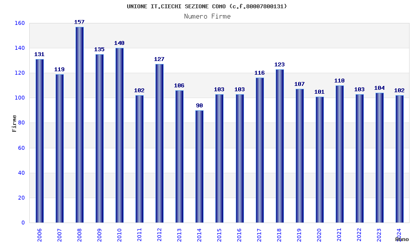 | Anno | Firme | Importi | Media | Naz. | Reg. | Prov. | Comu. |