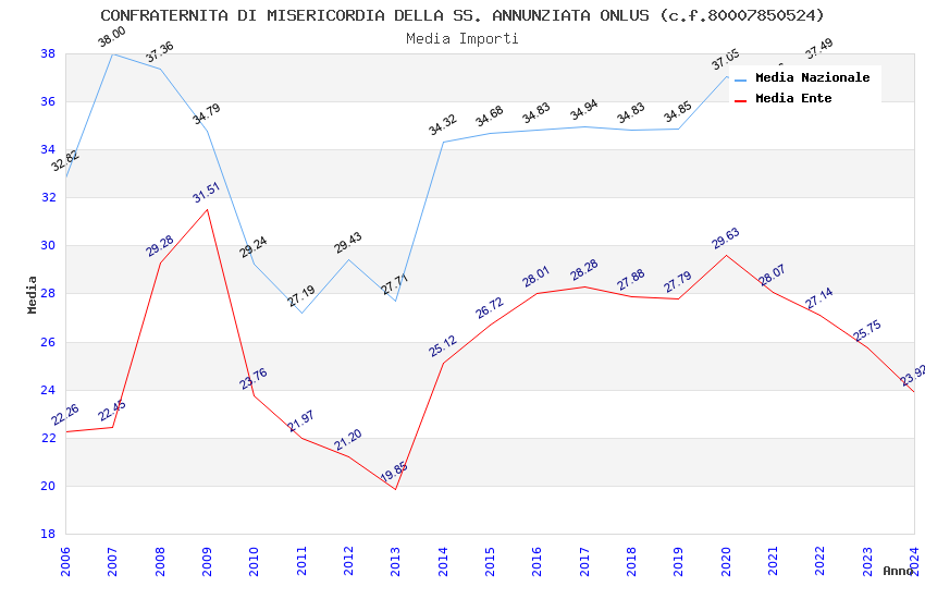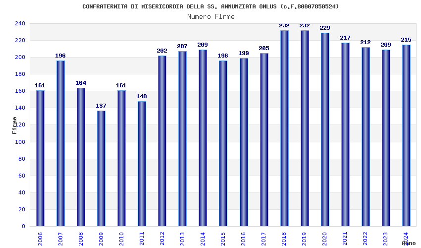 | Anno | Firme | Importi | Media | Naz. | Reg. | Prov. | Comu. |