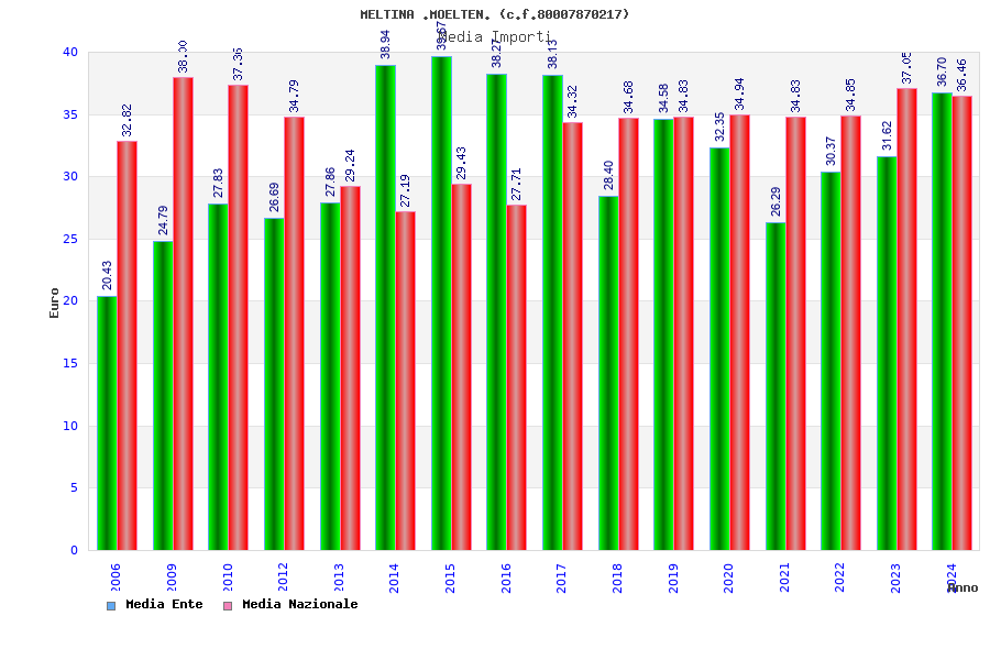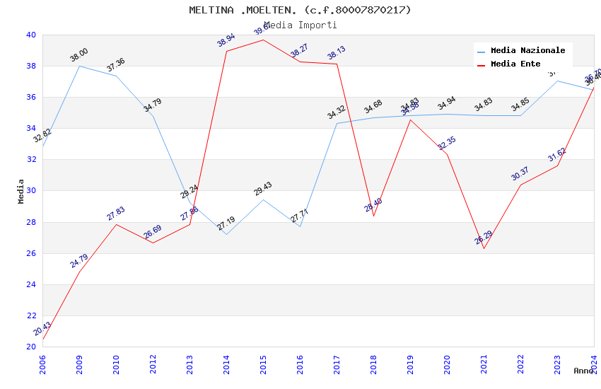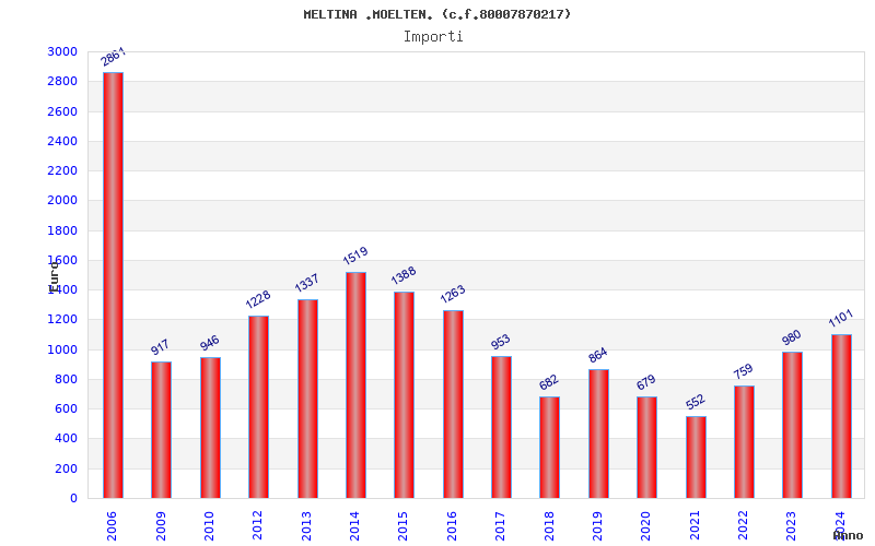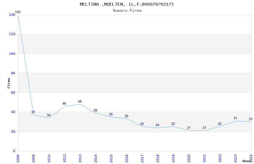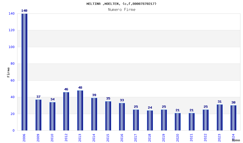 | Anno | Firme | Importi | Media | Naz. | Reg. | Prov. | Comu. |