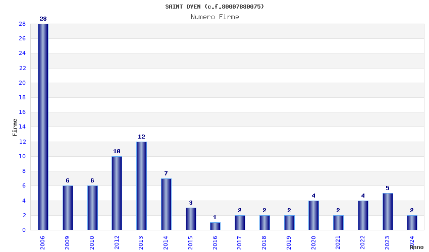 | Anno | Firme | Importi | Media | Naz. | Reg. | Prov. | Comu. |