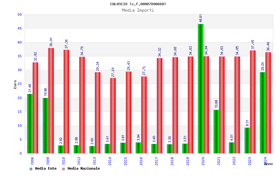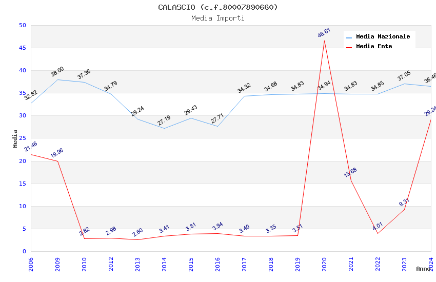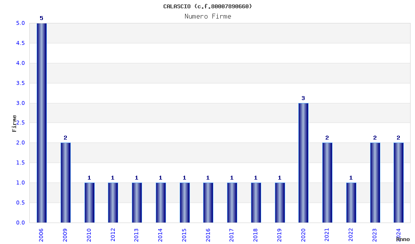 | Anno | Firme | Importi | Media | Naz. | Reg. | Prov. | Comu. |