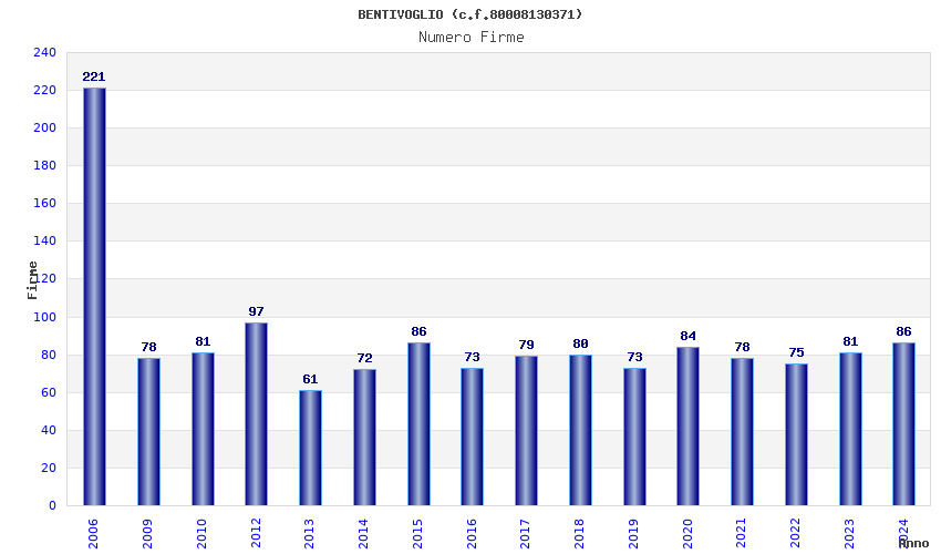 Anno Firme Importi Media Naz. Reg. Prov. Comu.