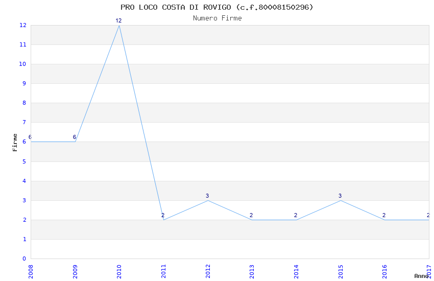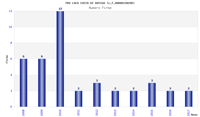 | Anno | Firme | Importi | Media | Naz. | Reg. | Prov. | Comu. |