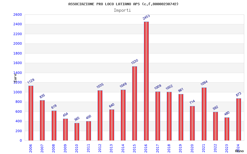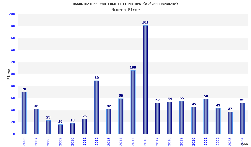 | Anno | Firme | Importi | Media | Naz. | Reg. | Prov. | Comu. |