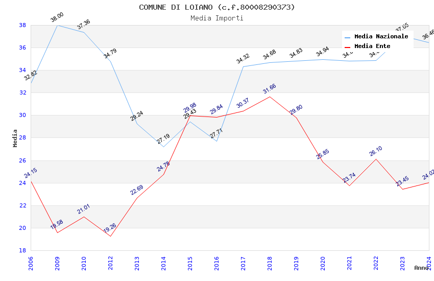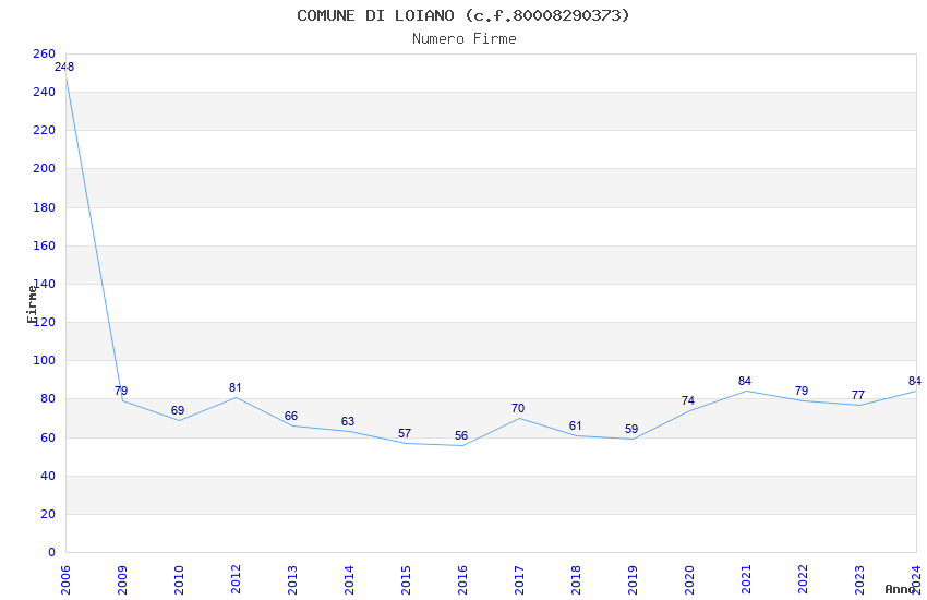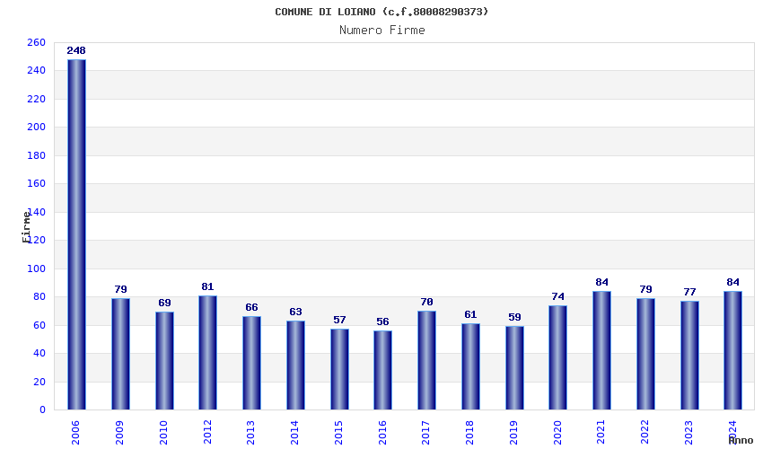 | Anno | Firme | Importi | Media | Naz. | Reg. | Prov. | Comu. |