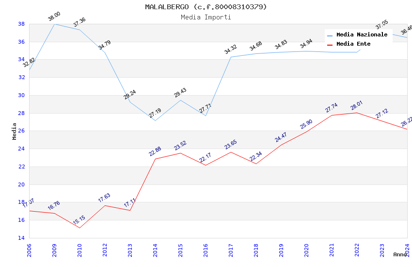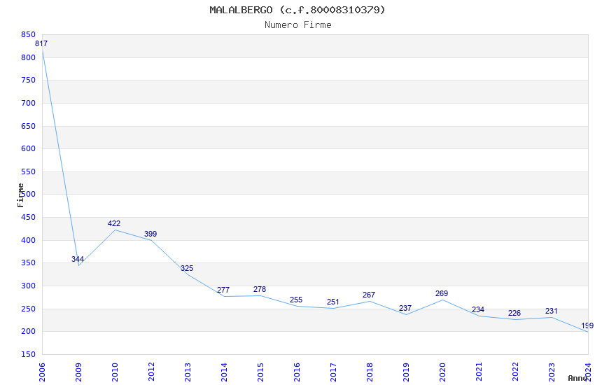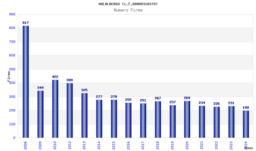 | Anno | Firme | Importi | Media | Naz. | Reg. | Prov. | Comu. |