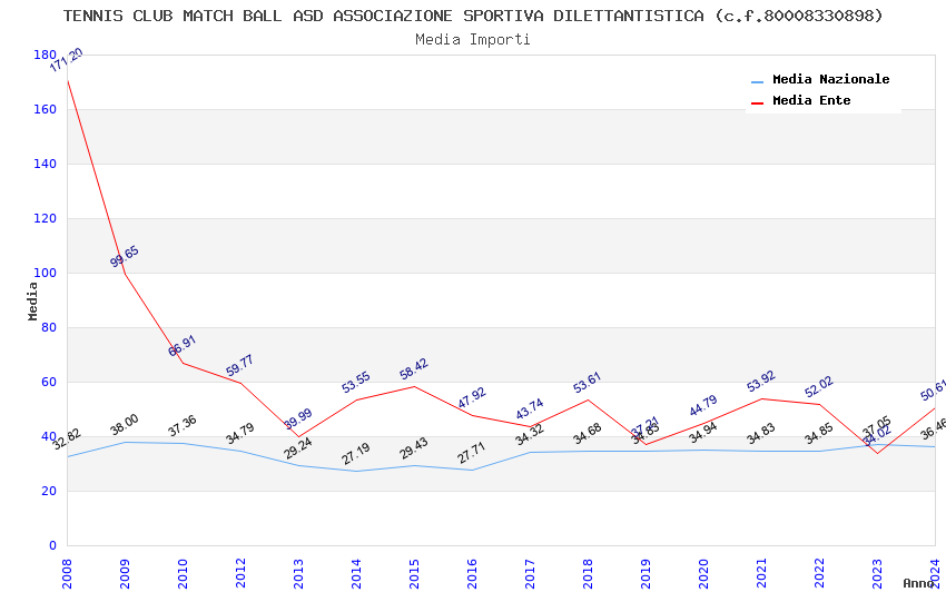 | Anno | Firme | Importi | Media | Naz. | Reg. | Prov. | Comu. |