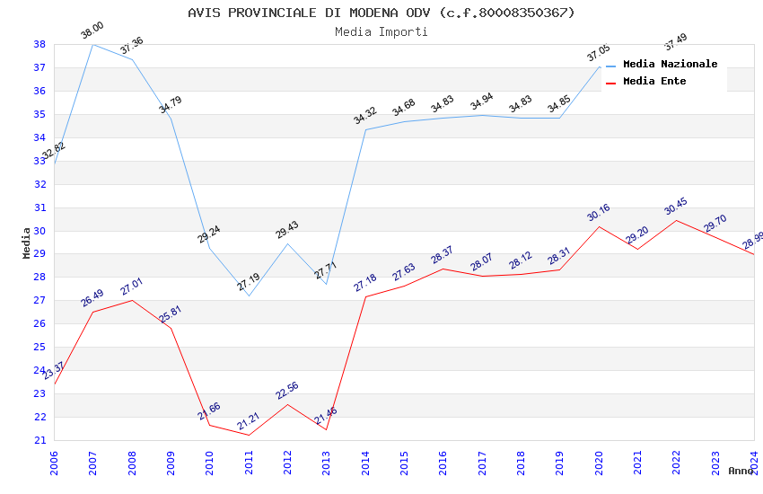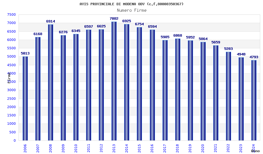 | Anno | Firme | Importi | Media | Naz. | Reg. | Prov. | Comu. |