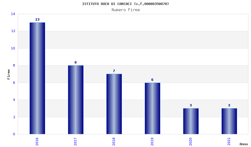 | Anno | Firme | Importi | Media | Naz. | Reg. | Prov. | Comu. |