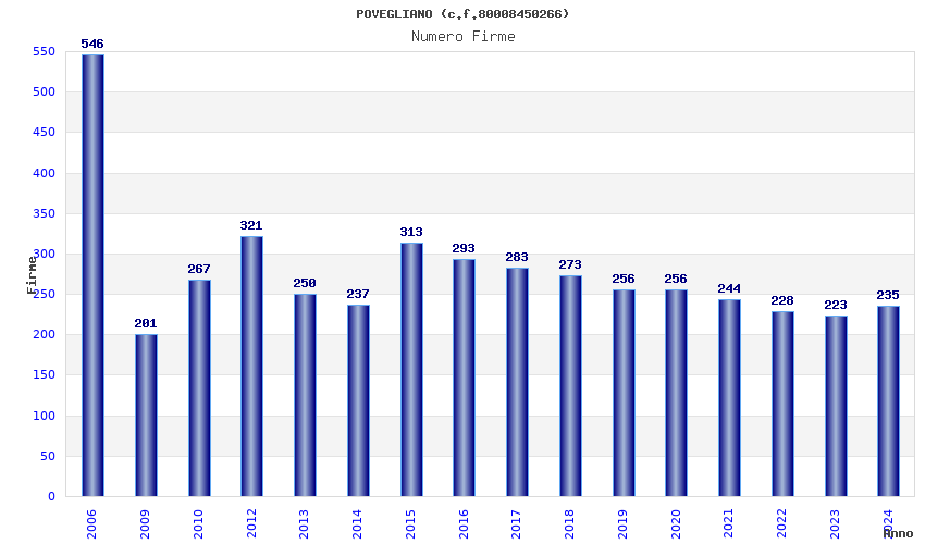 | Anno | Firme | Importi | Media | Naz. | Reg. | Prov. | Comu. |