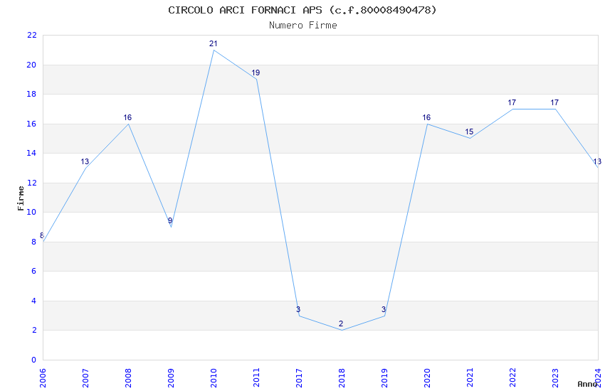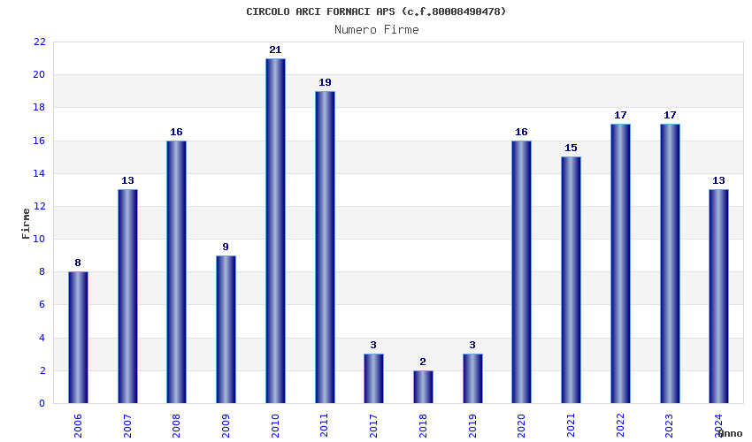 | Anno | Firme | Importi | Media | Naz. | Reg. | Prov. | Comu. |