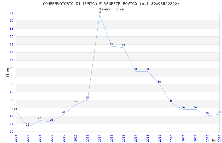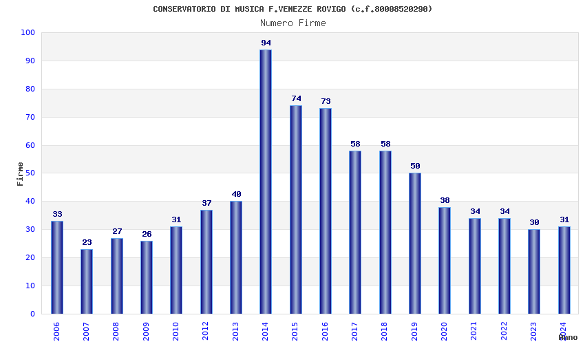 | Anno | Firme | Importi | Media | Naz. | Reg. | Prov. | Comu. |