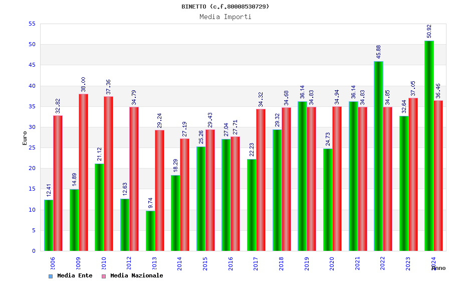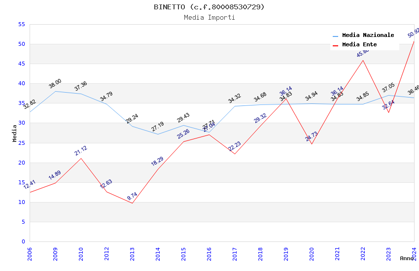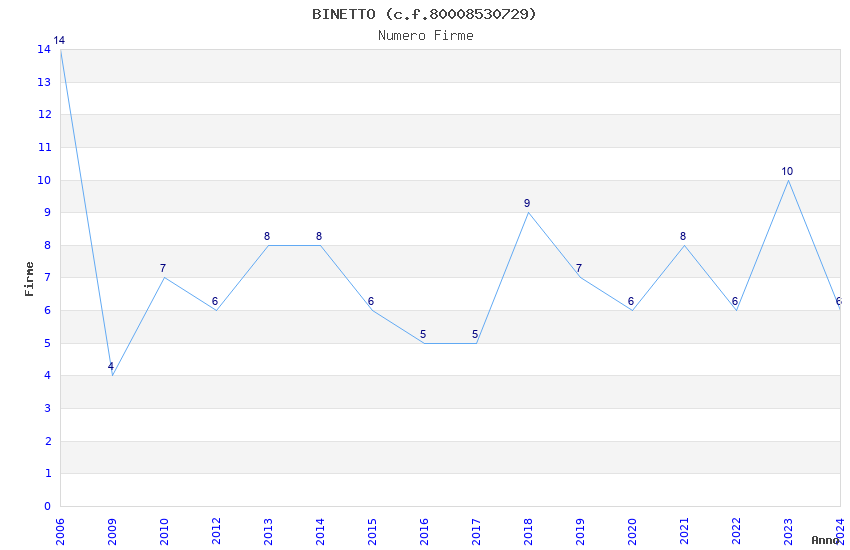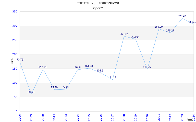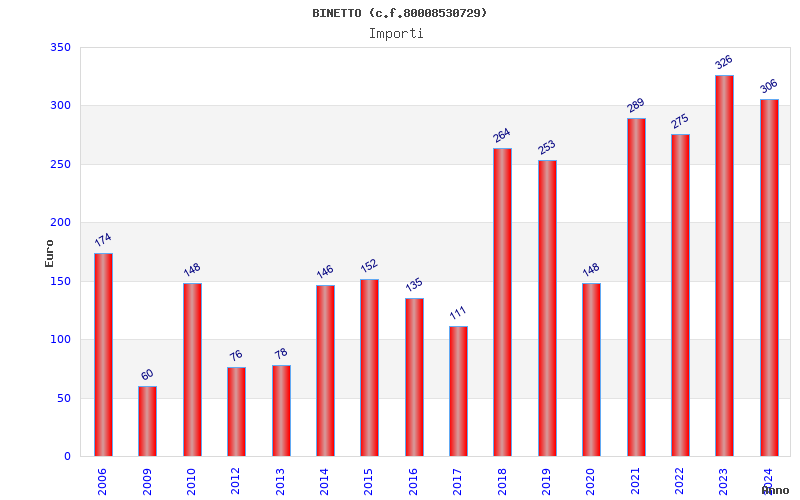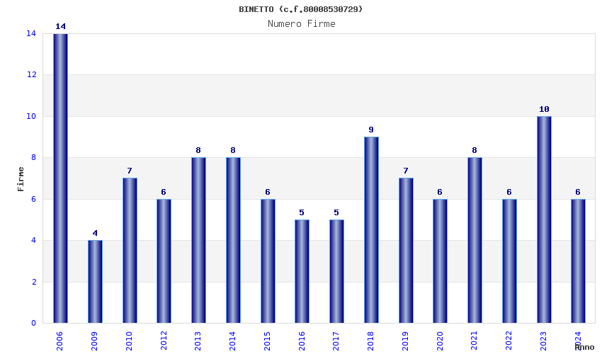 | Anno | Firme | Importi | Media | Naz. | Reg. | Prov. | Comu. |