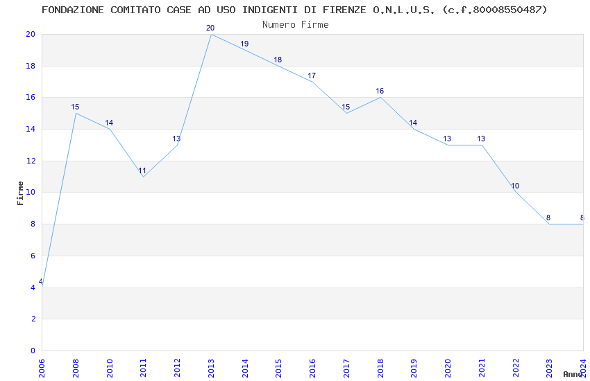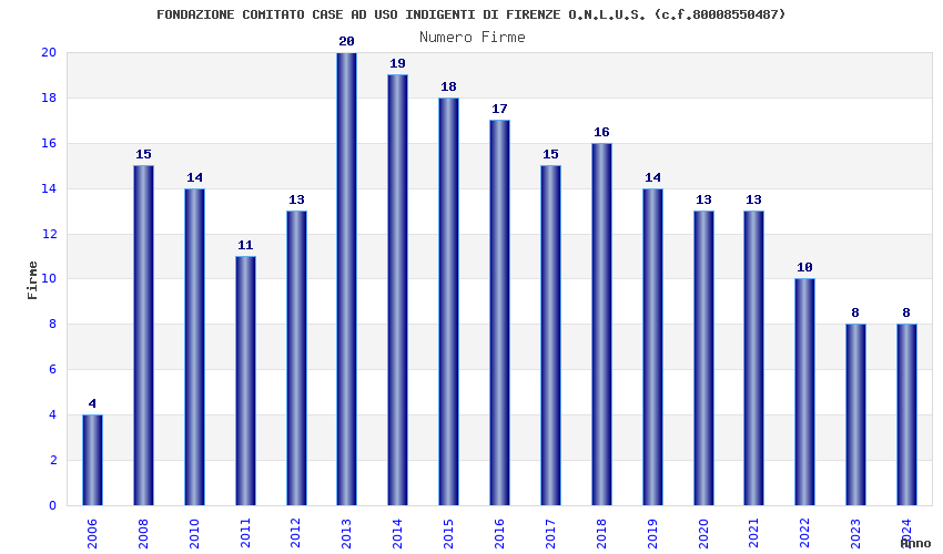 | Anno | Firme | Importi | Media | Naz. | Reg. | Prov. | Comu. |