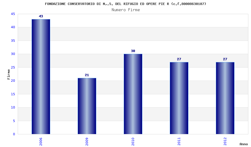 | Anno | Firme | Importi | Media | Naz. | Reg. | Prov. | Comu. |