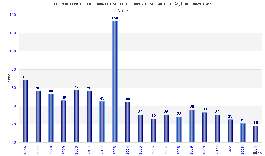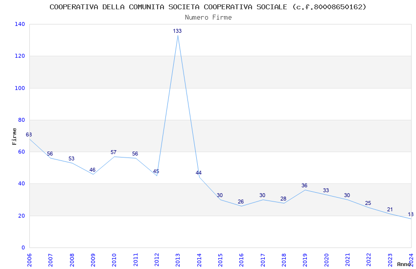 | 2013 | 133 | 2.322,54 | 17,46 | 16.616 | 3.855 | 381 | 5 |