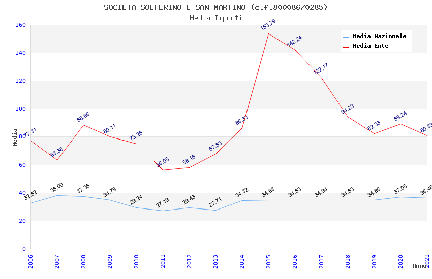 | Anno | Firme | Importi | Media | Naz. | Reg. | Prov. | Comu. |
