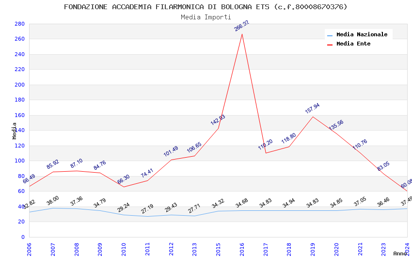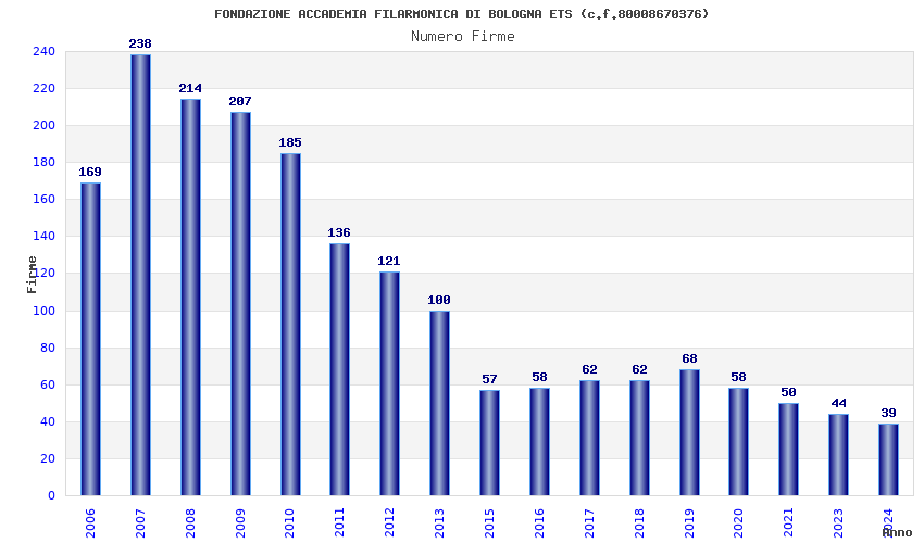 | Anno | Firme | Importi | Media | Naz. | Reg. | Prov. | Comu. |