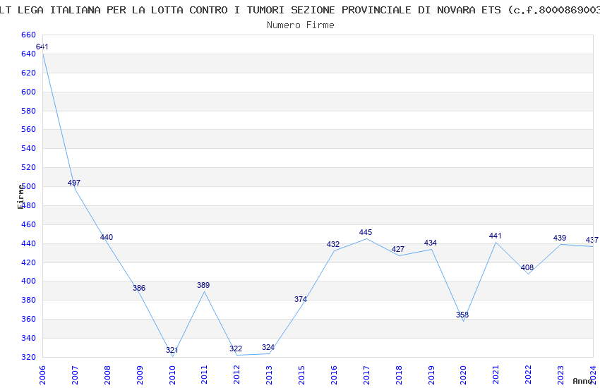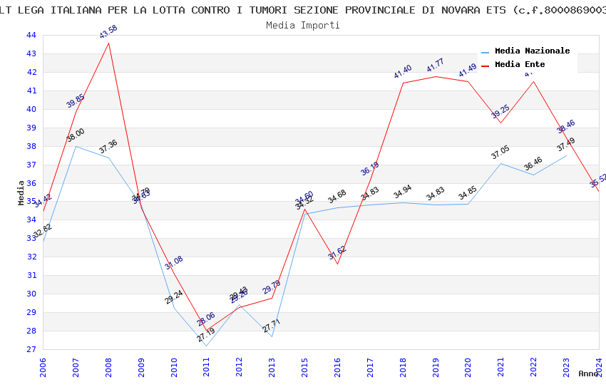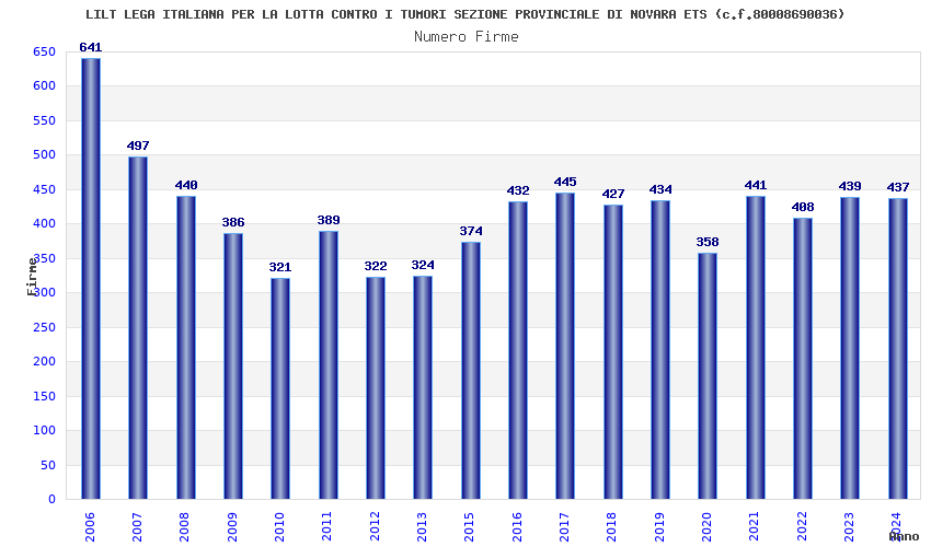 | Anno | Firme | Importi | Media | Naz. | Reg. | Prov. | Comu. |
