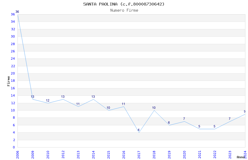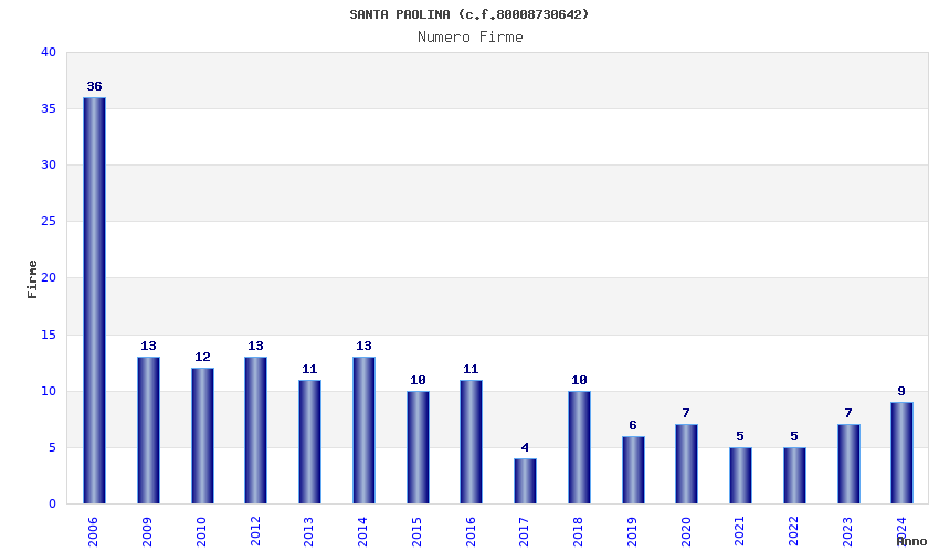 | Anno | Firme | Importi | Media | Naz. | Reg. | Prov. | Comu. |