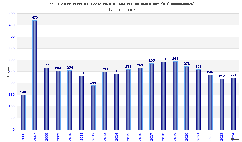 | 2007 | 470 | 12.629,13 | 26,87 | 3.037 | 196 | 20 | 1 |