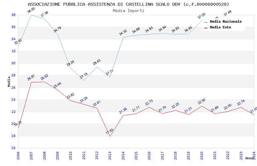 | Anno | Firme | Importi | Media | Naz. | Reg. | Prov. | Comu. |