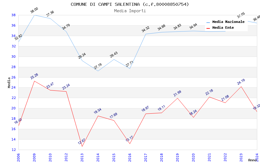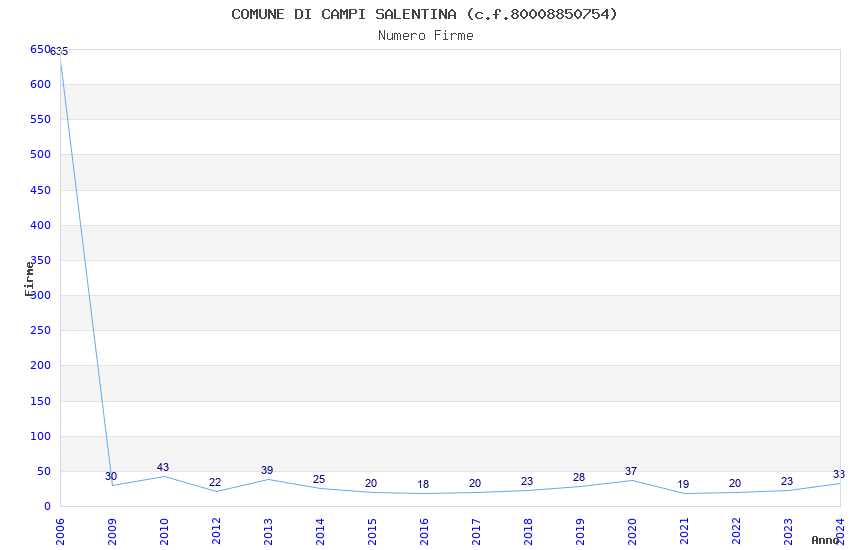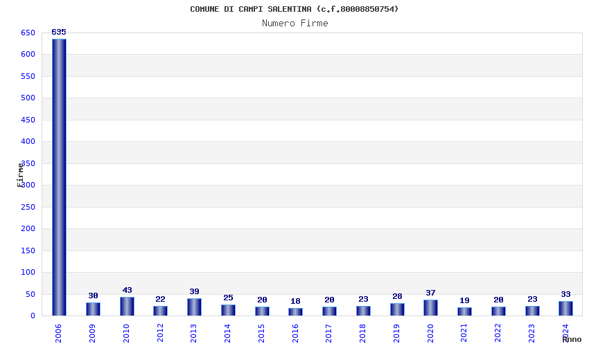 | Anno | Firme | Importi | Media | Naz. | Reg. | Prov. | Comu. |