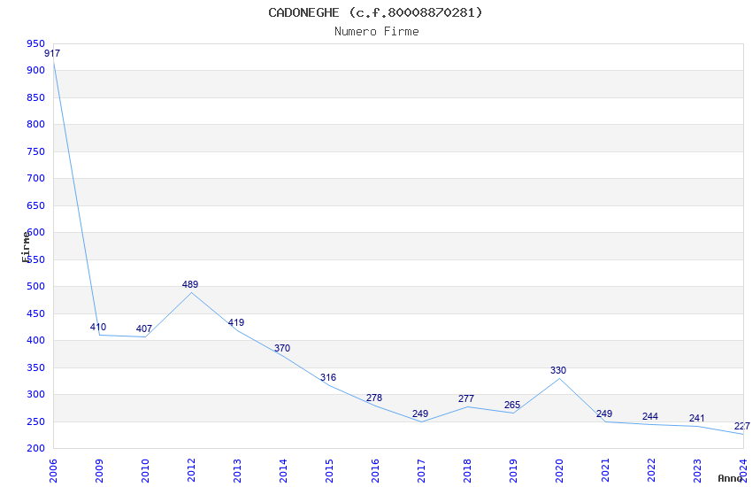 | 2006 | 917 | 21.809,18 | 23,78 | 1.619 | 119 | 32 | 1 |