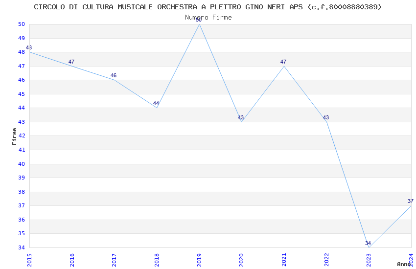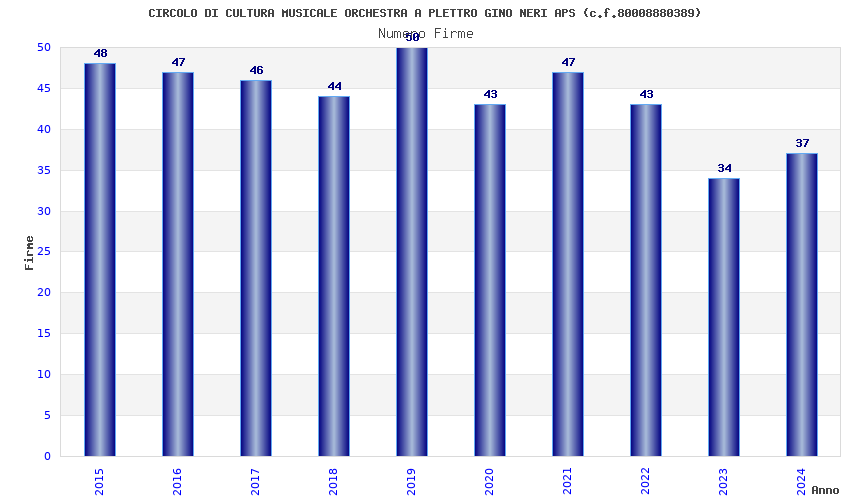 | Anno | Firme | Importi | Media | Naz. | Reg. | Prov. | Comu. |