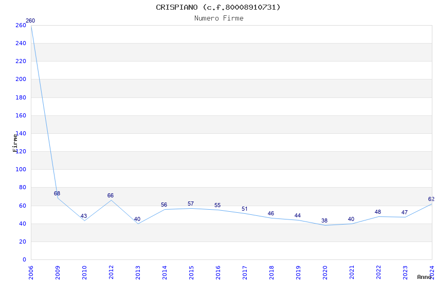 | 2006 | 260 | 4.342,89 | 16,70 | 9.190 | 367 | 47 | 2 |