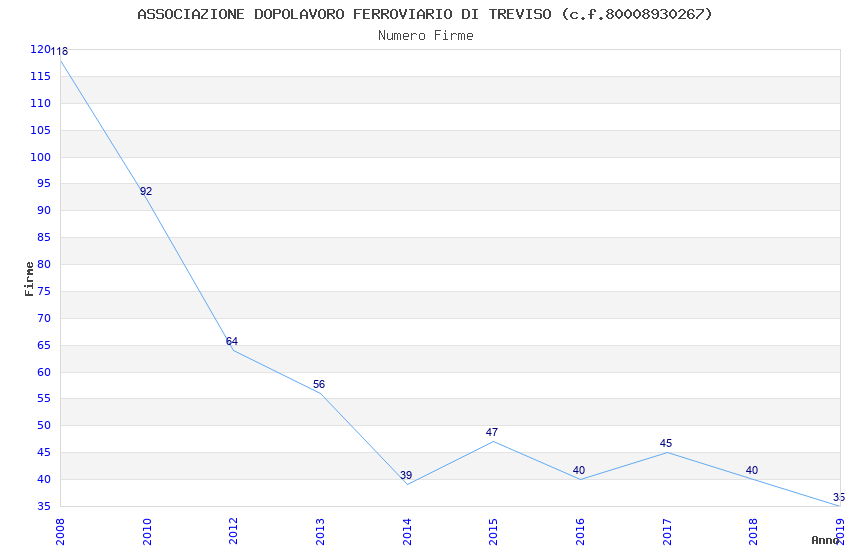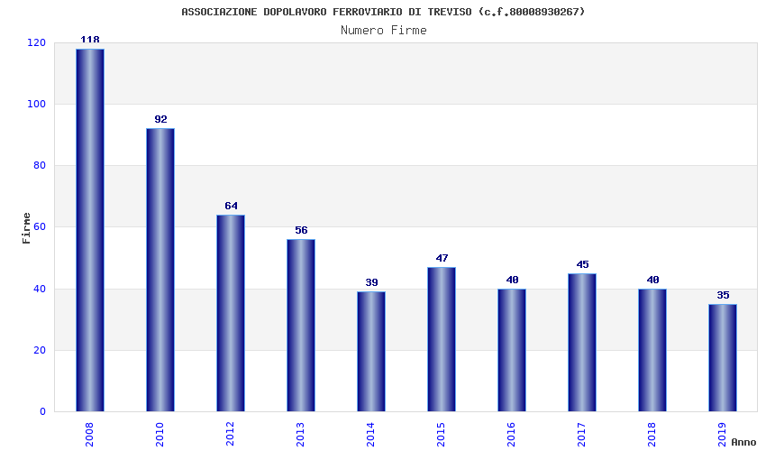 | Anno | Firme | Importi | Media | Naz. | Reg. | Prov. | Comu. |