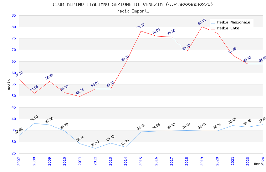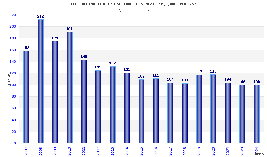 | Anno | Firme | Importi | Media | Naz. | Reg. | Prov. | Comu. |