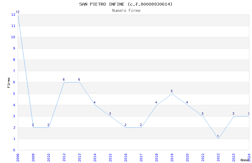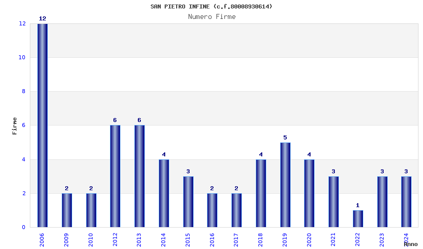 | Anno | Firme | Importi | Media | Naz. | Reg. | Prov. | Comu. |