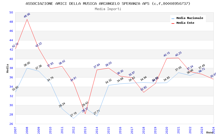 | Anno | Firme | Importi | Media | Naz. | Reg. | Prov. | Comu. |