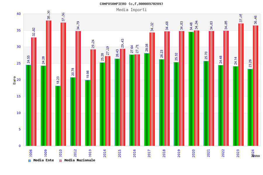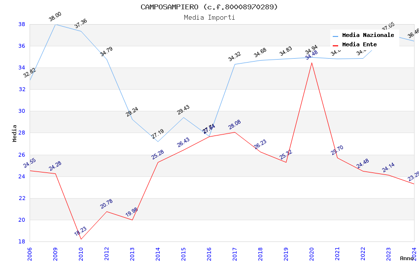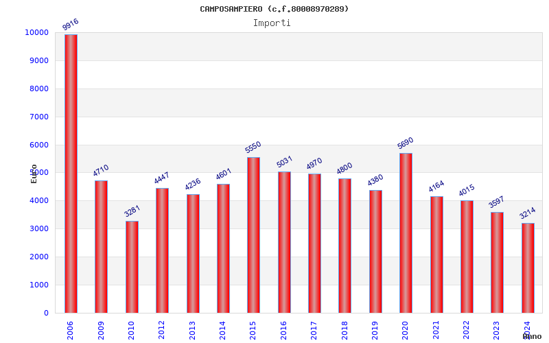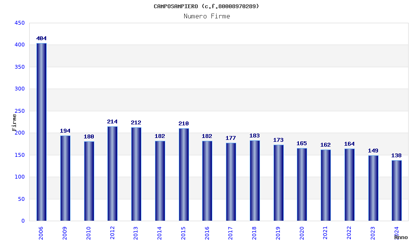 | Anno | Firme | Importi | Media | Naz. | Reg. | Prov. | Comu. |