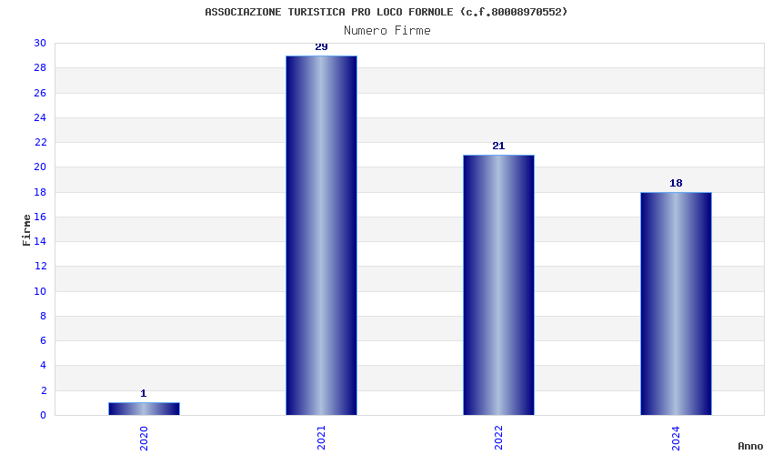 | Anno | Firme | Importi | Media | Naz. | Reg. | Prov. | Comu. |