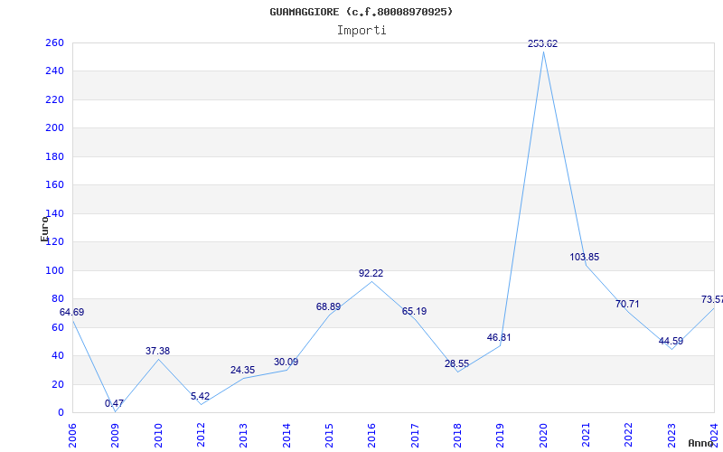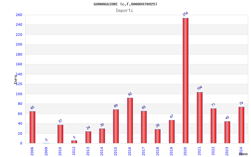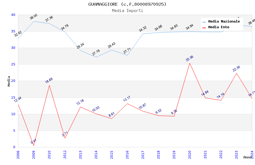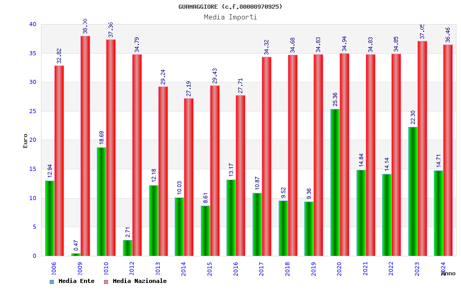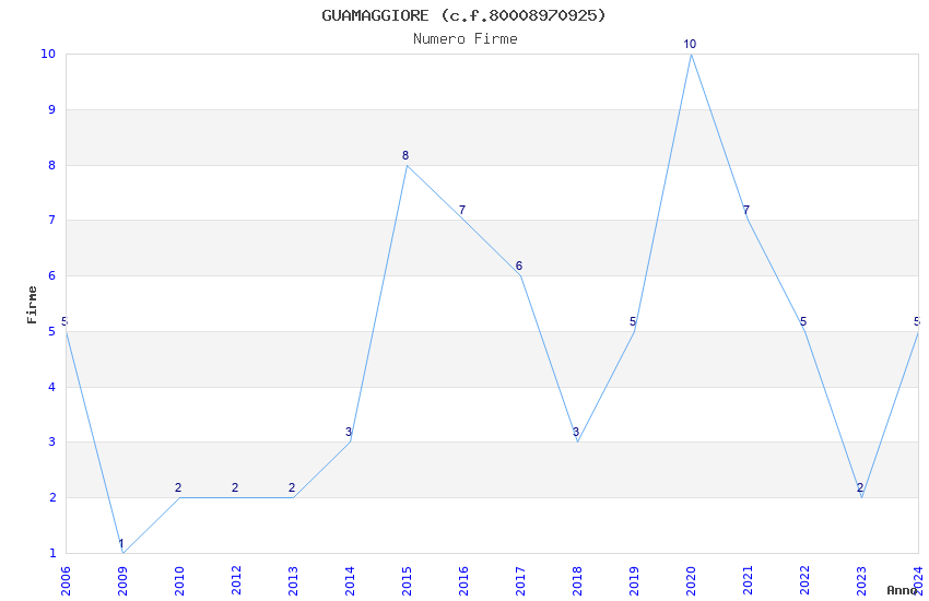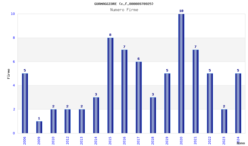 | Anno | Firme | Importi | Media | Naz. | Reg. | Prov. | Comu. |