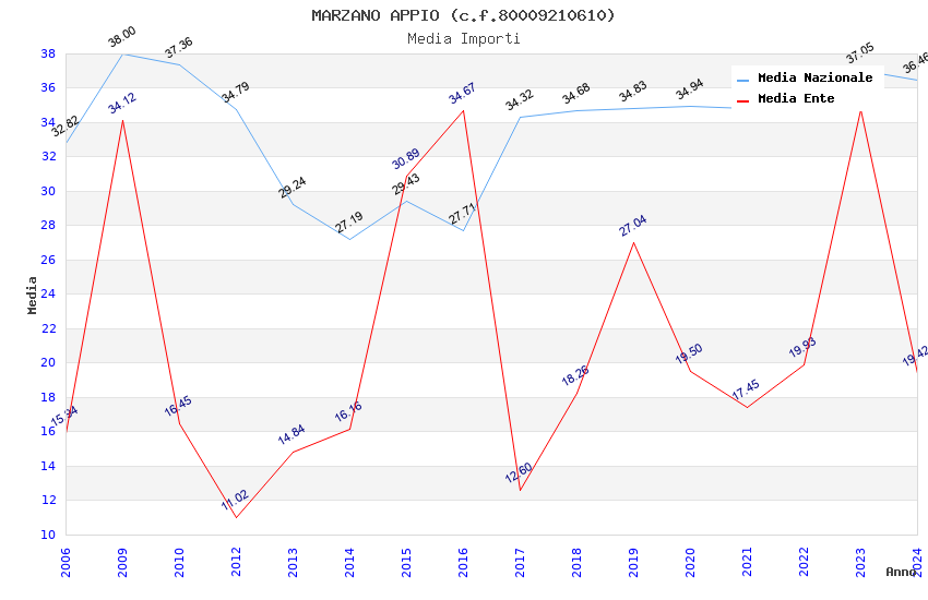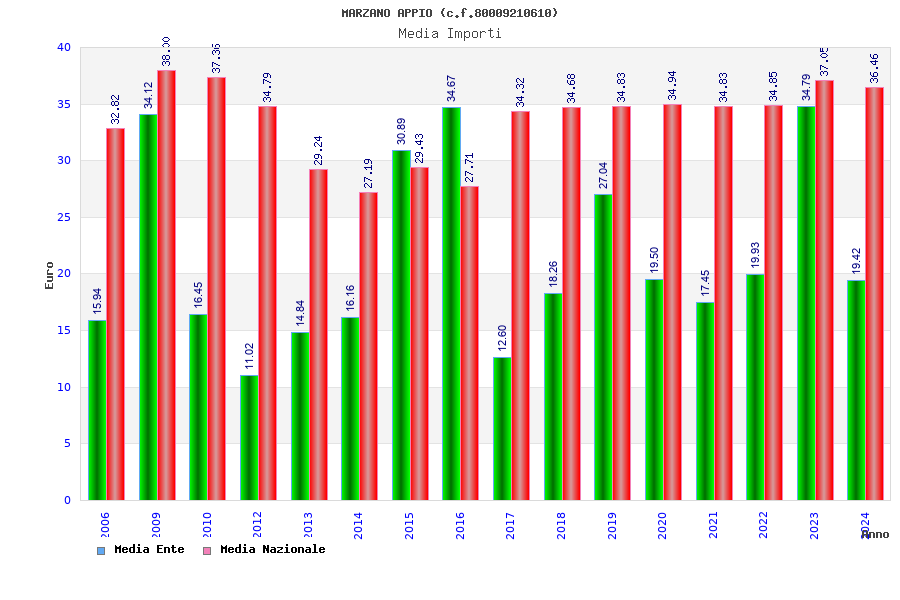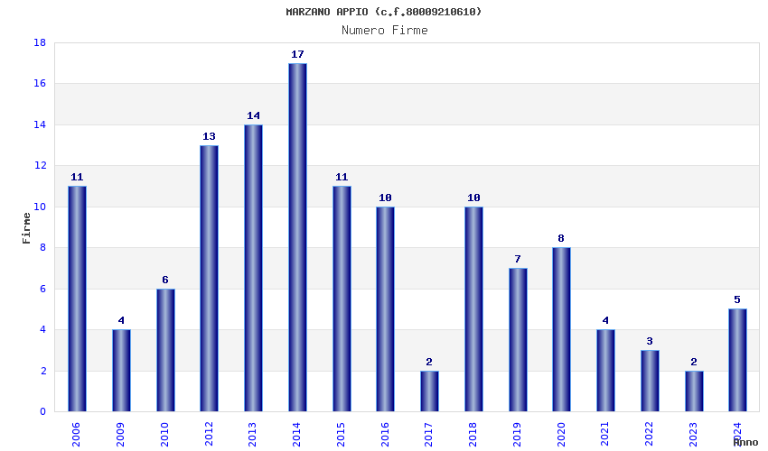 | Anno | Firme | Importi | Media | Naz. | Reg. | Prov. | Comu. |